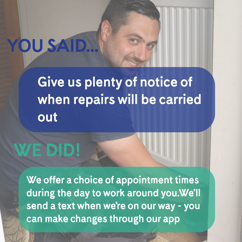 - We use your feedback from repairs visits to improve services and repaint communal areas.