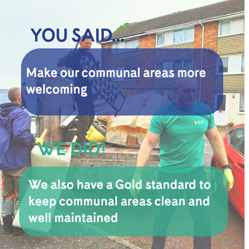 - We use your feedback from repairs visits to improve services and repaint communal areas.